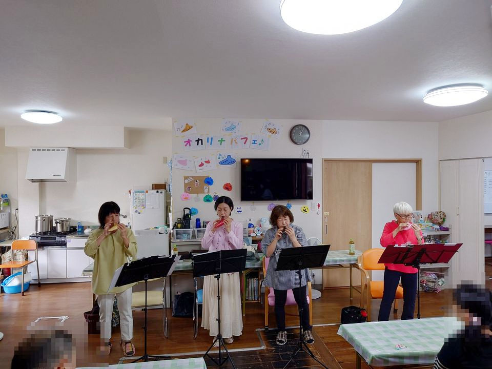 『オカリナパフェ』 令和7年3月25日(火)オカリナパフェの皆様が遊びに来て下さり演奏をしてくれま した。オカリナの繊細な優しい音色に利用者様職員ともに耳を澄ませ、手拍子を したり楽しい時間を過ごしました。
