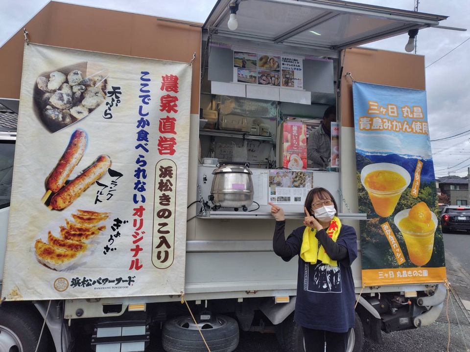 『浜松きのこキッチンカー』 令和7年11月12日(水)そらまめ駐車場に浜松きのこのキッチンカーがやって来まし た。炊き込みご飯や天ぷら、餃子やフランクなどお腹いっぱい食べてもデザートは 別腹でキッチンカーに並んでいました。美味しそうに食べる利用者様の姿に癒され た一日でした。